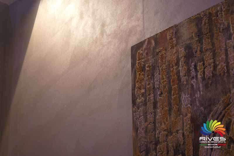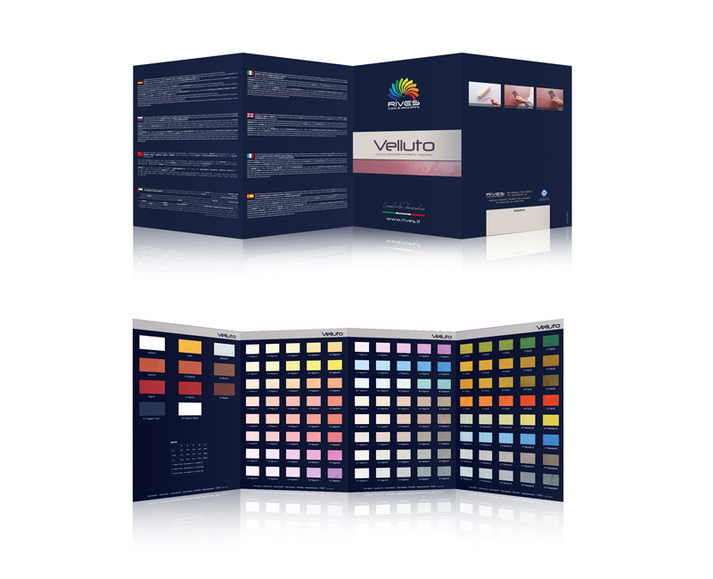 Decorative water-based painting with an iridescent e ect can reproduce the look of velvet in its various shades and give walls an unparalleled atmosphere. "VELLUTO" is available in ve metallic bases, "ARGENTO 01, ORO 02, ALLUMINIO 03, RAME O4" e "BRONZO 05". e available colors are obtained by mixing a "VELLUTO" metallic base with the required amount of dye, called "COLOR KIT", or alternatively with the "SISTEMA TIN- TOMETRICO RIVES" colour mixing system.DOWNLOAD COLOR CHART
