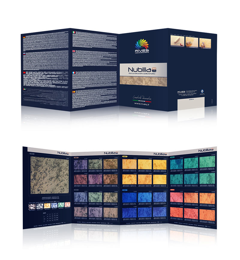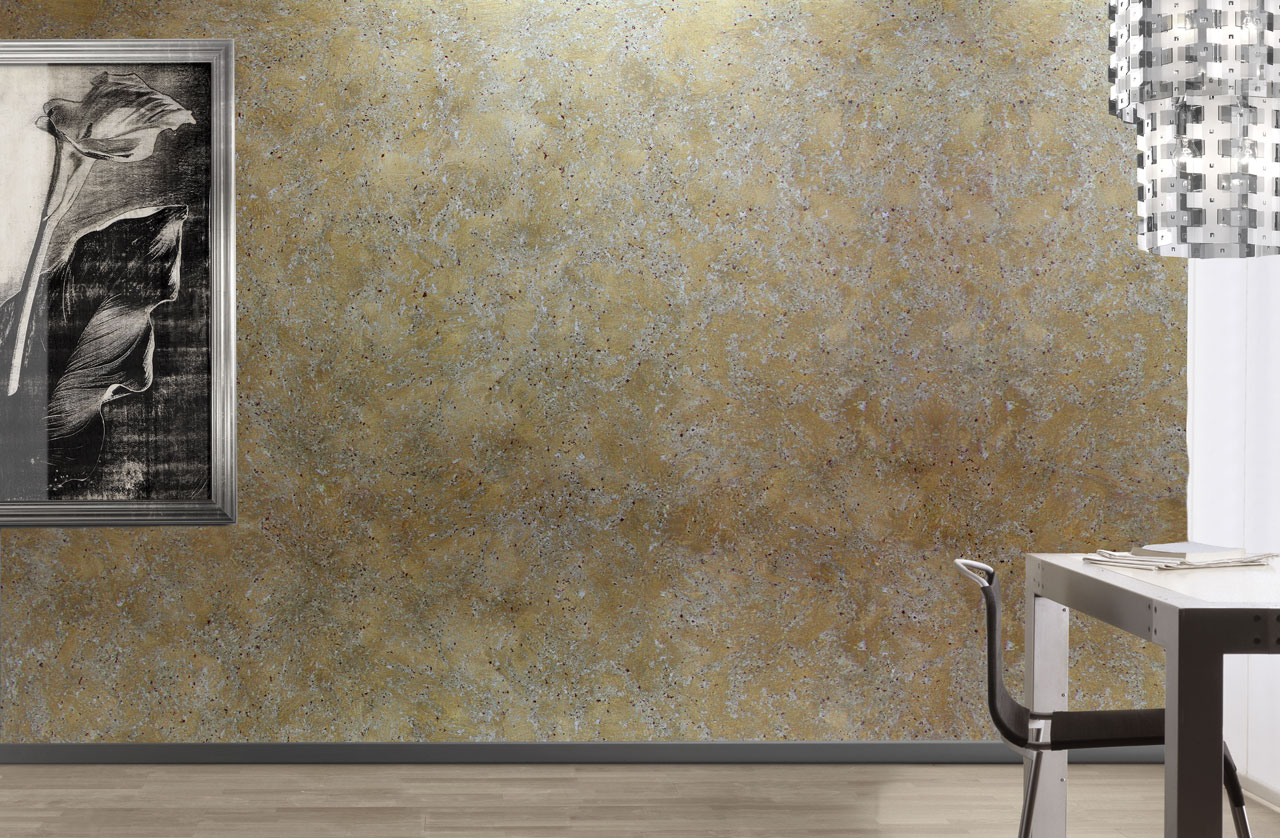 Decorative water-based paint for interiors that can be used to produce a range of chromatic effects. Easy to apply, giving the supporting medium a harmonious natural display of colours, gold or silver, depending on the desired effect.The colour shades on the card are obtained by mixing the product with the indicated quantity of dye, using what is referred to as a COLOUR KIT, or alternatively, by using the SISTEMA TINTOMETRICO RIVES (RIVES COLOUR SYSTEM).